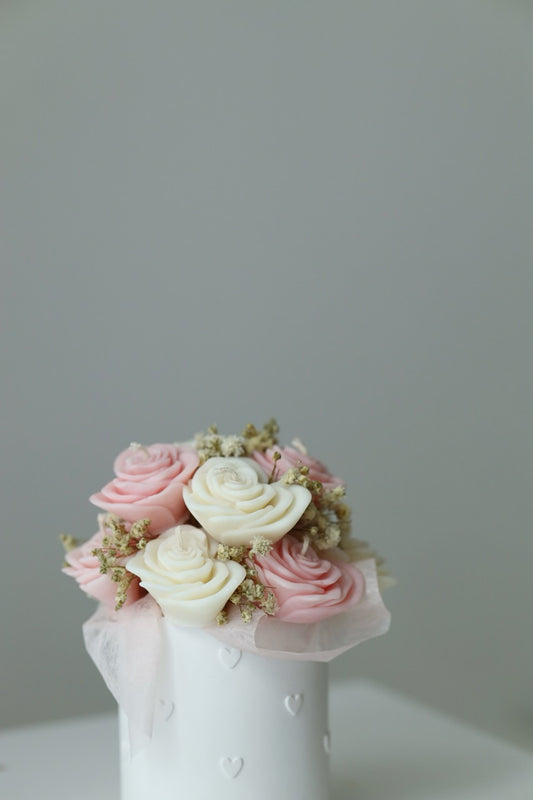 Kerzenstrauß "pink valentine" handgegossen aus Rapswachs