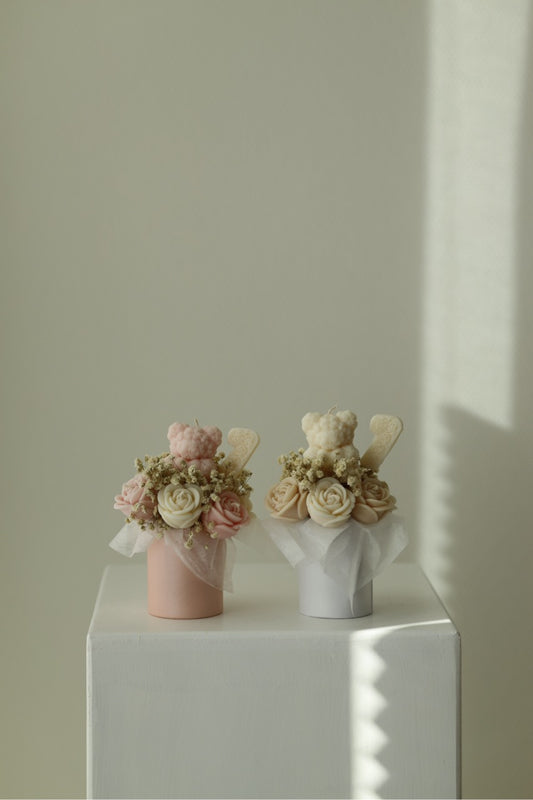 Kerzenstrauß "petite teddy" - handgegossen aus Rapswachs