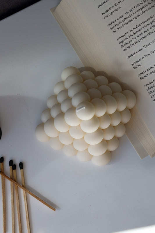 Kerze „Round Bubble“ – handgegossen aus Rapswachs, modern & verspielt