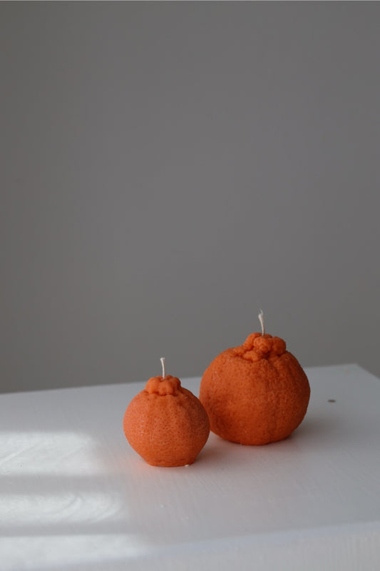 Mandarinenkerzen im 2er-Set – Handgemachte Rapswachskerzen in Fruchtform