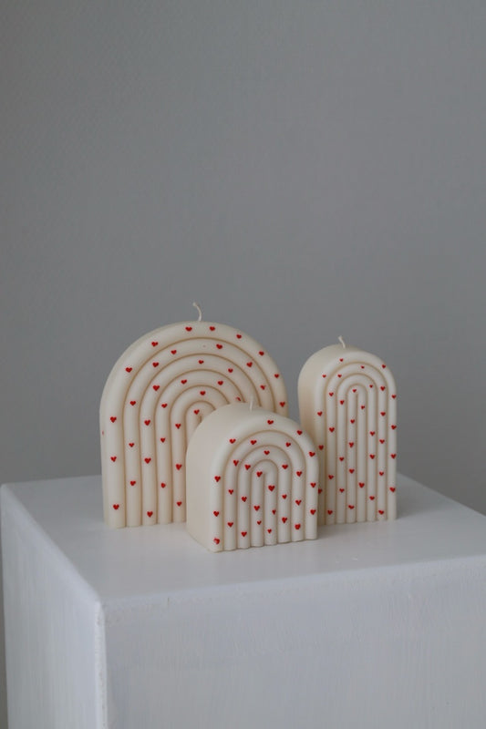 Kerzenset „Herzbogen“ – 3er Set mit roten Miniherzen