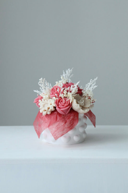 Kerzenstrauß "pink valentine" handgegossen aus Rapswachs