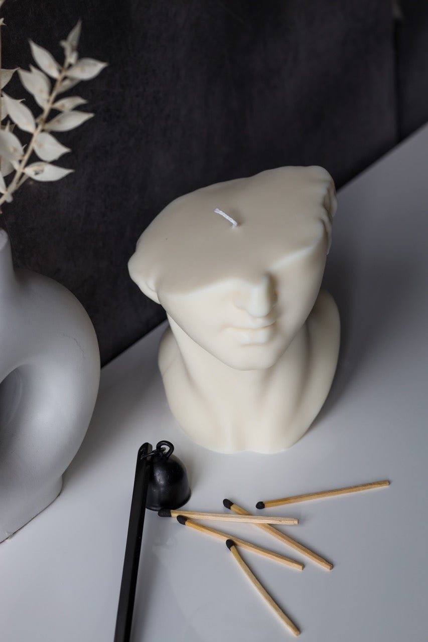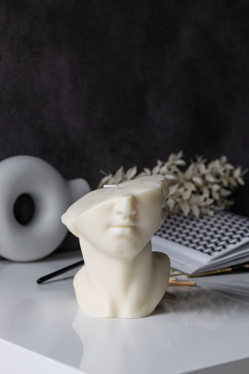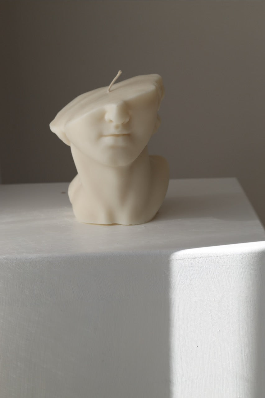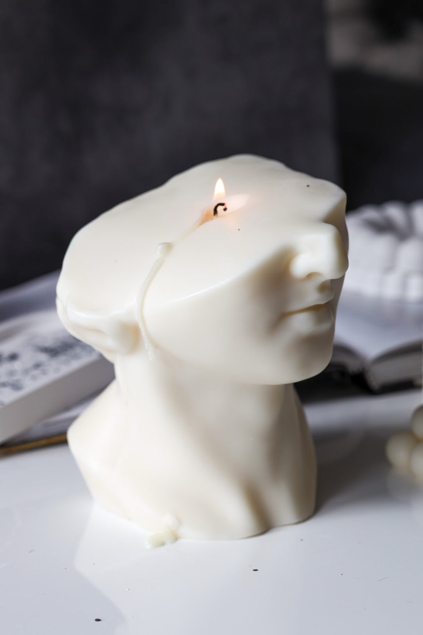 Kerze „Kopf“ – handgegossen aus Rapswachs, skulptural & stilvoll