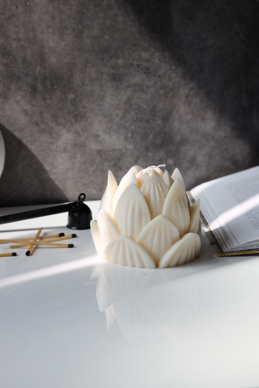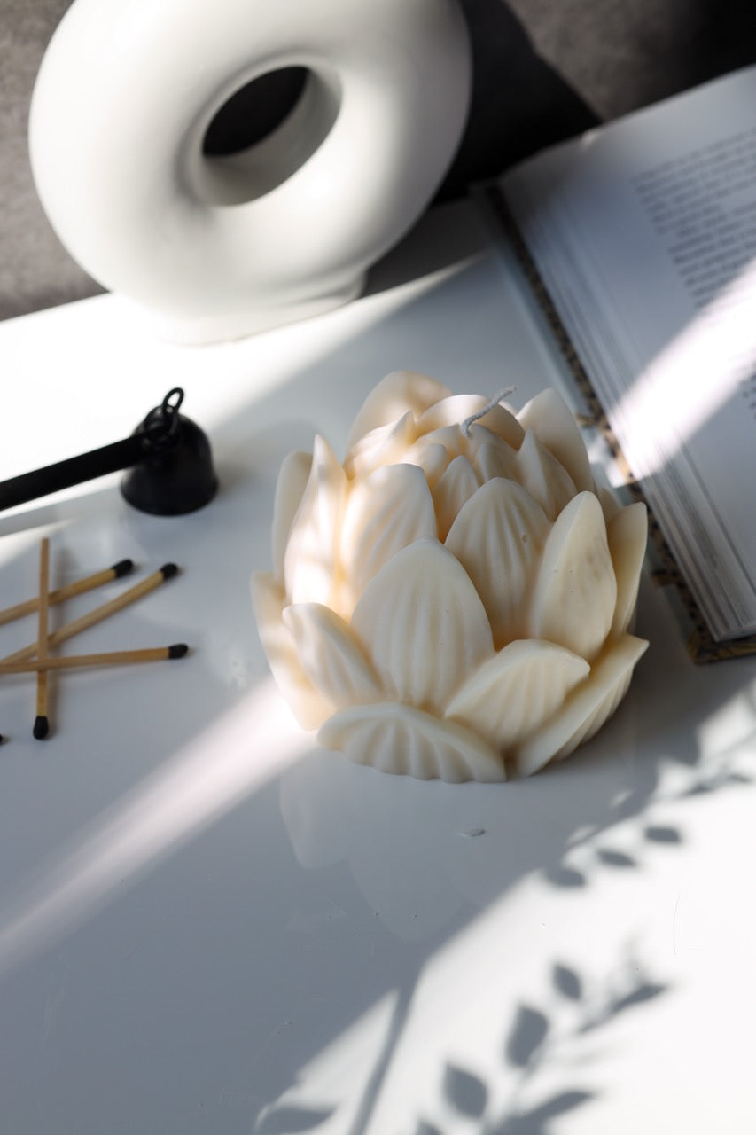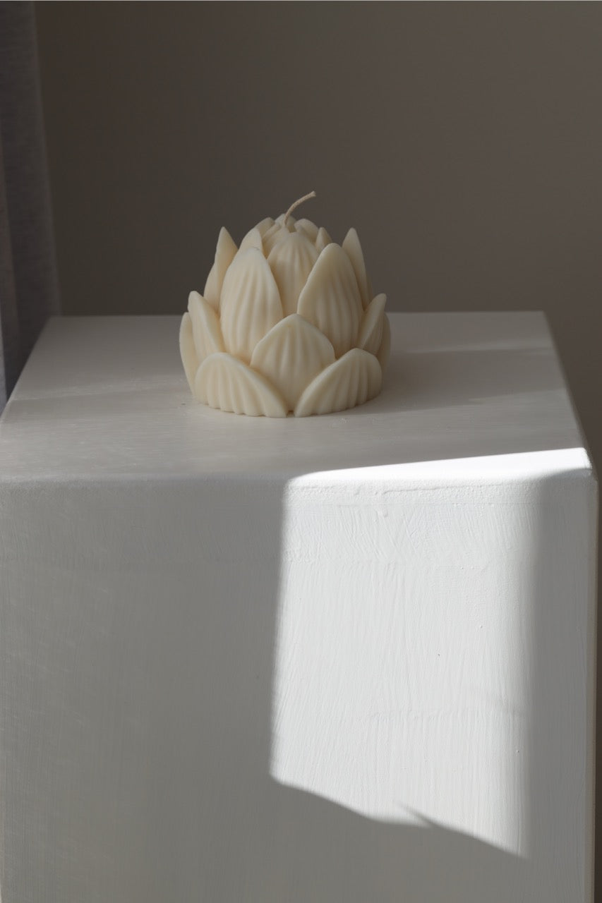Kerze „Lotus“ – handgegossen aus Rapswachs, blütenzart & stilvoll