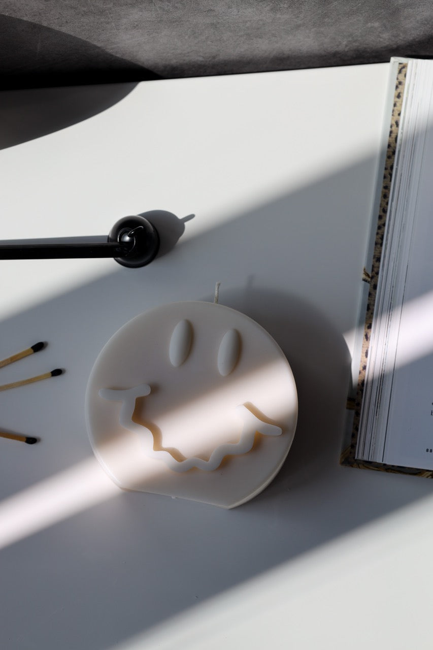 Kerze „Smiley“ – handgegossen aus Rapswachs, fröhlich & stilvoll
