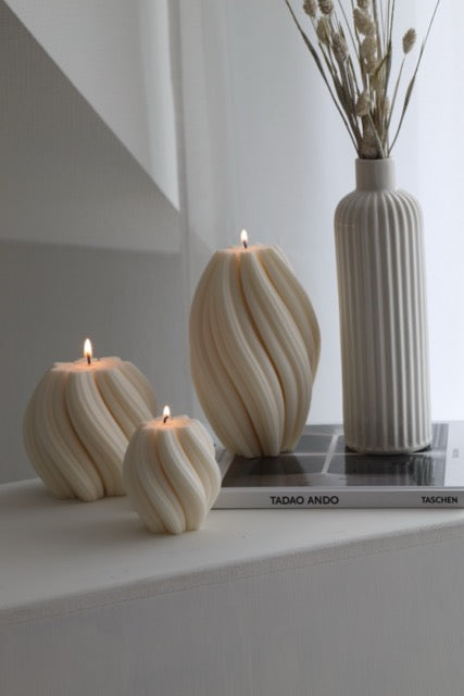 Kerze „Swirl“ – handgegossen aus Rapswachs, elegant & verspielt