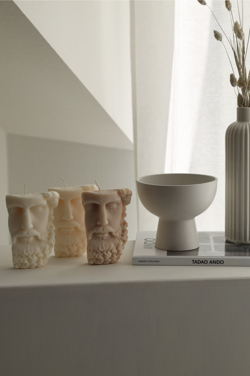 Die Kerze „Zeus“ bringt mit ihrer detailreichen Form einen Hauch von antiker Eleganz in dein Zuhause. Inspiriert von der griechischen Mythologie, setzt sie stilvolle Akzente – ob im Wohnzimmer, Schlafzimmer oder Atelier.