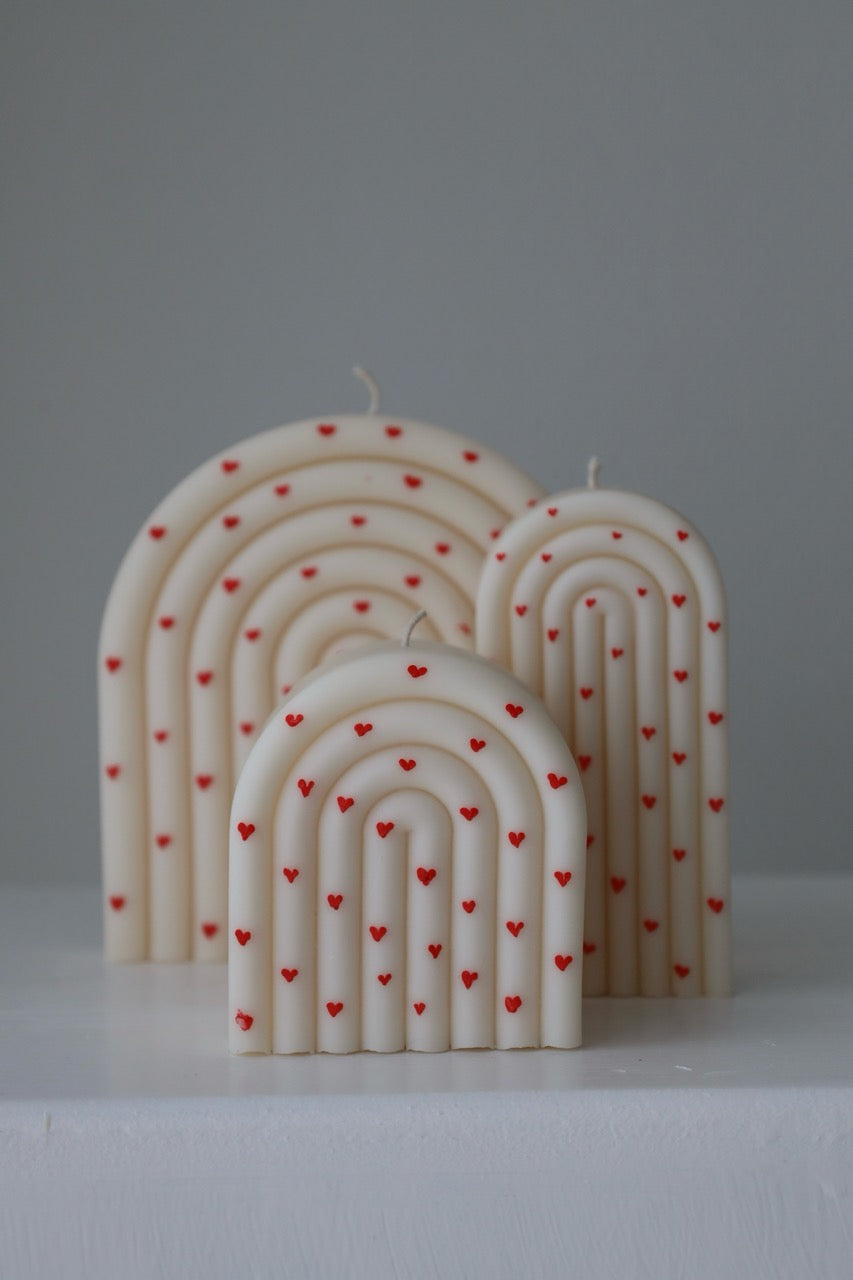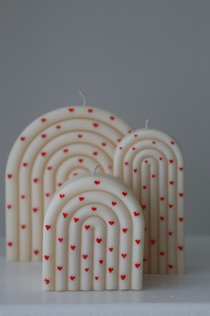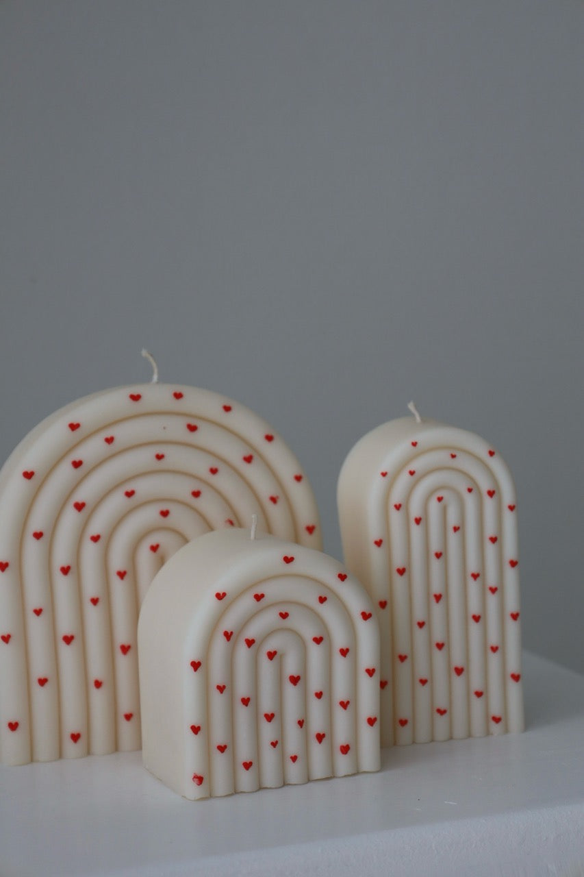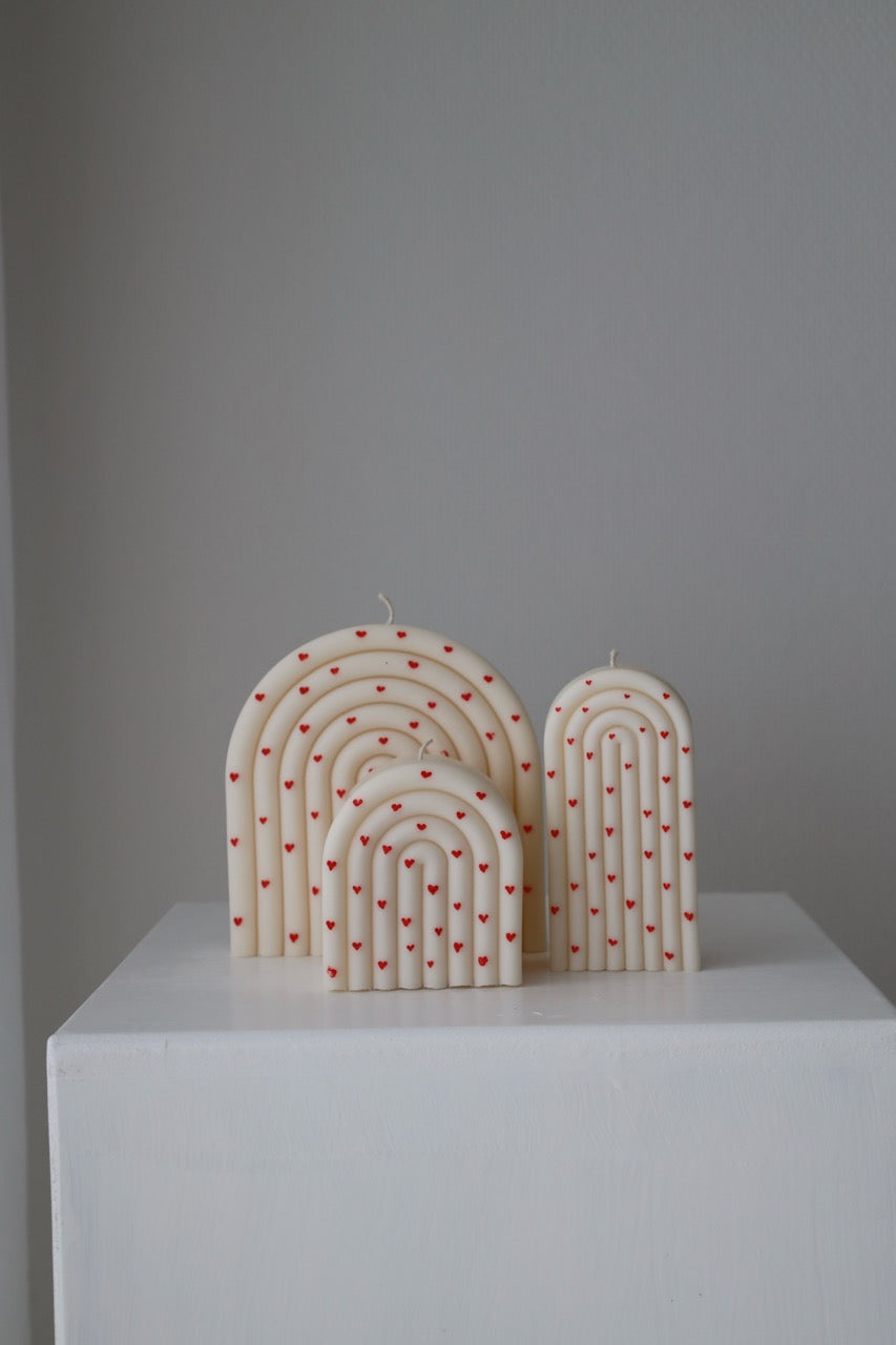 Kerzenset „Herzbogen“ – 3er Set mit roten Miniherzen
