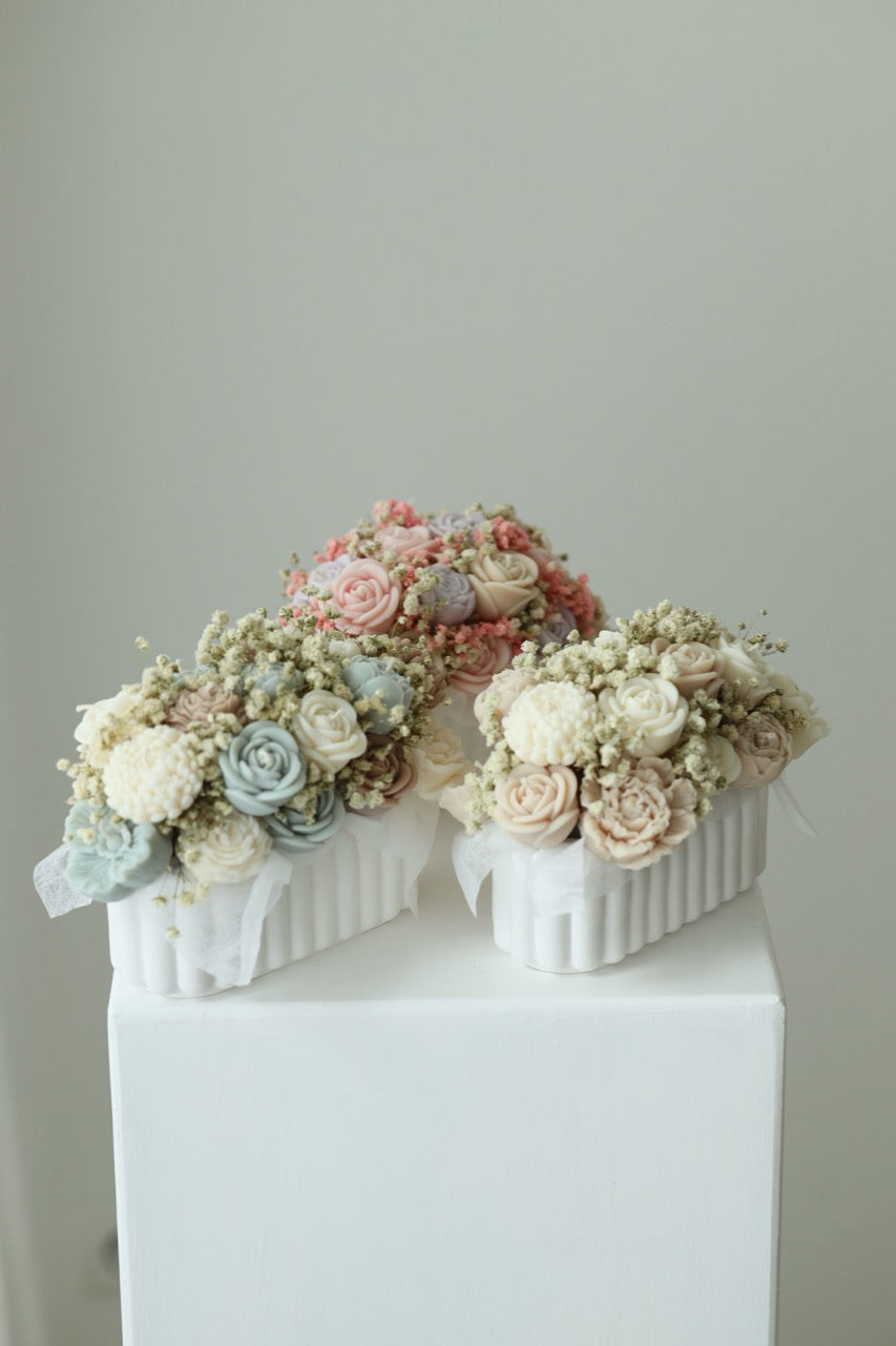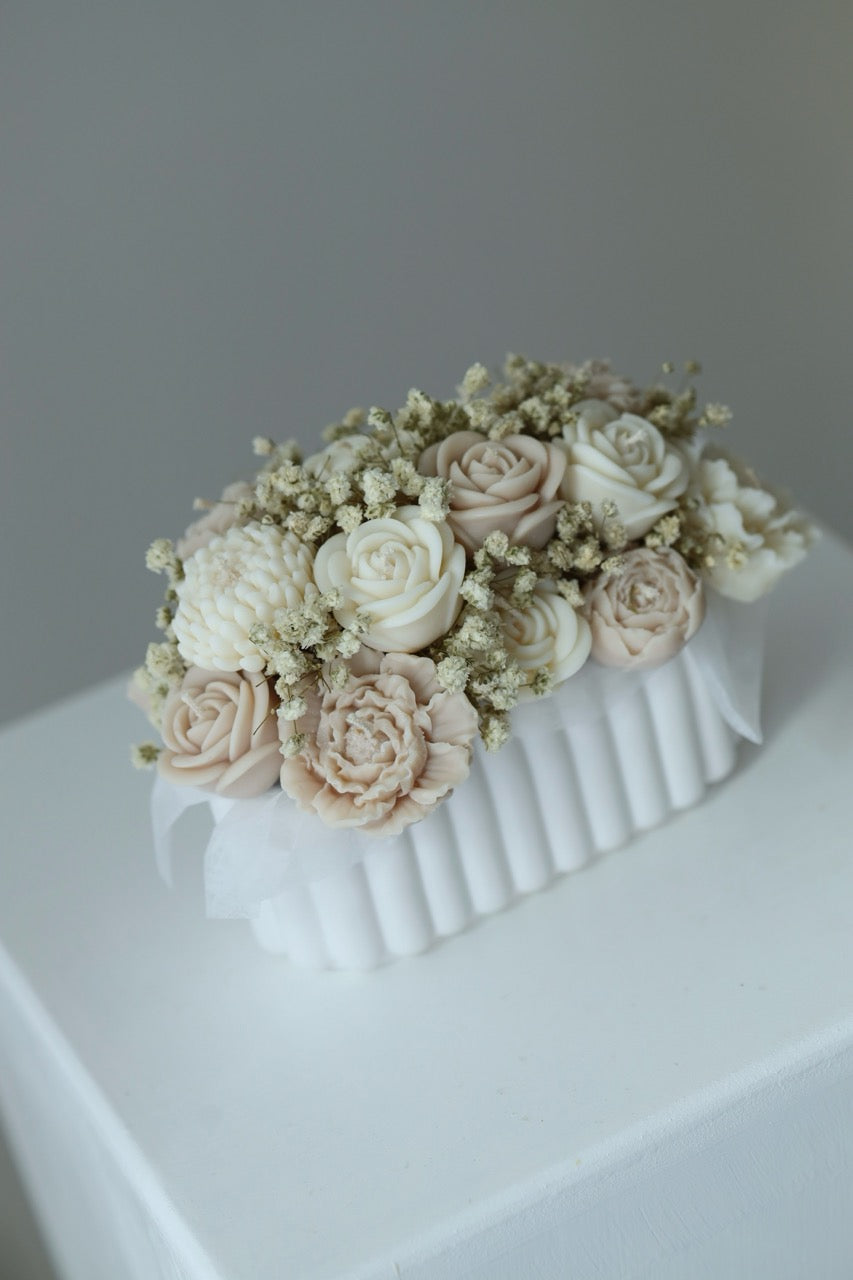 Tauche ein in die Welt von Blossom by SKARA – ein Kerzenstrauß, der Ruhe und Natürlichkeit vereint.Jede einzelne Blüte wurde von Hand aus Rapswachs gegossen und mit feinem Schleierkraut zu einem sanft harmonischen Arrangement kombiniert.