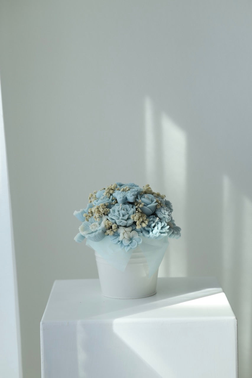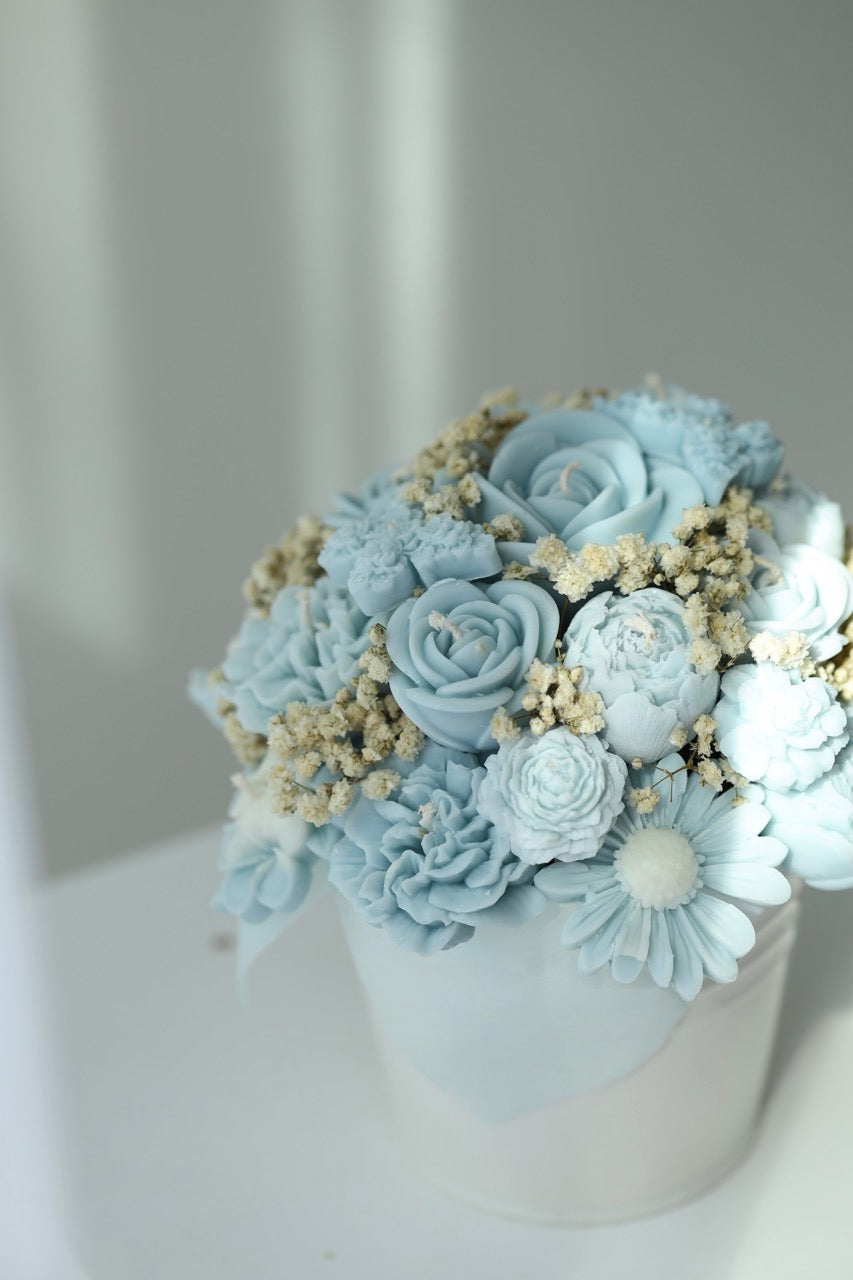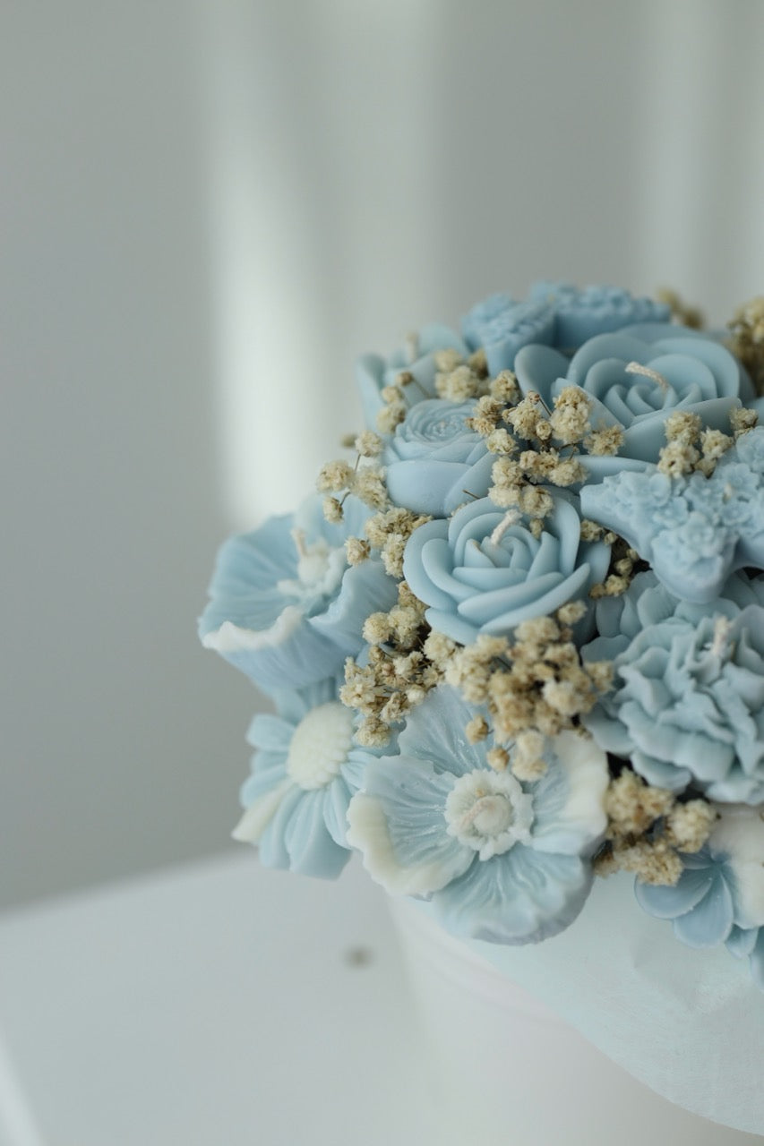 Kerzenstrauß "Blue Poésie" - handgegossen aus Rapswachs