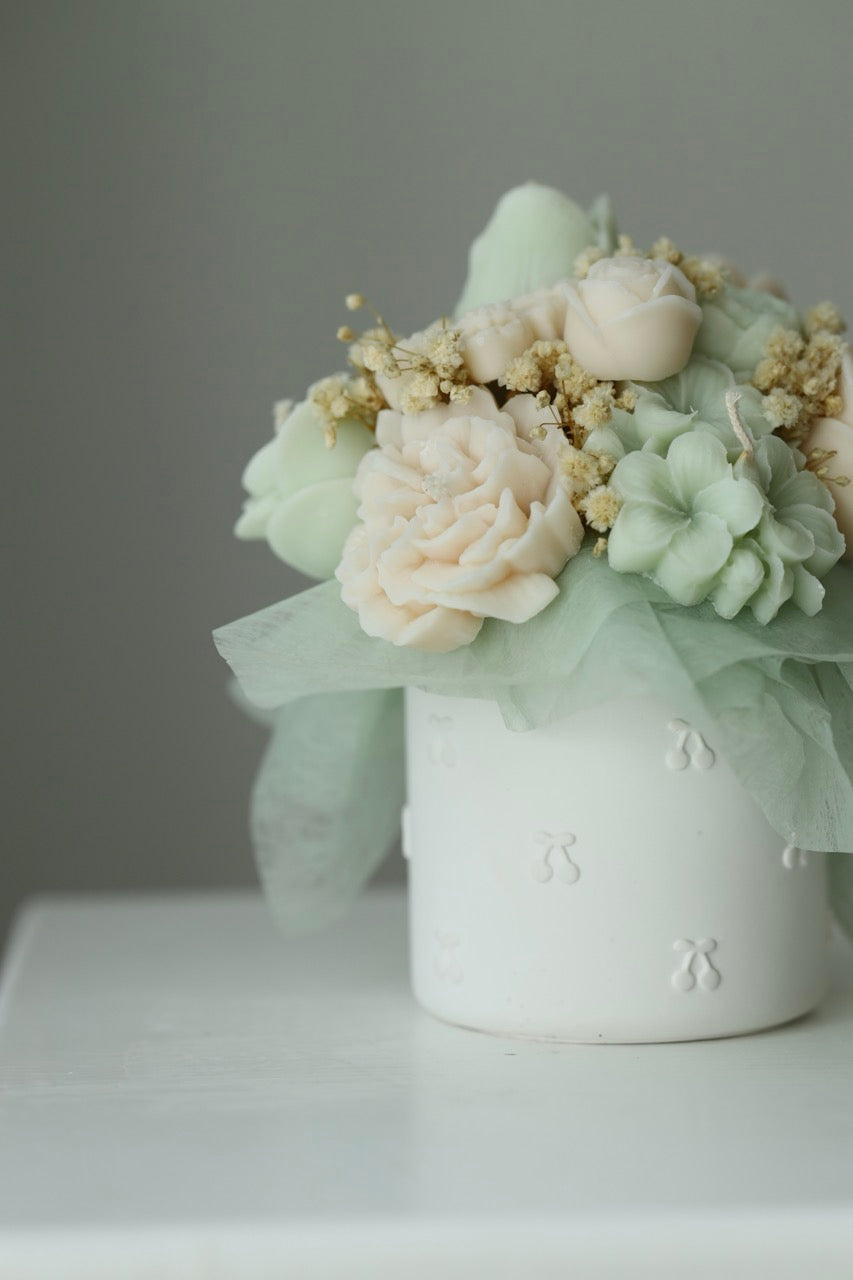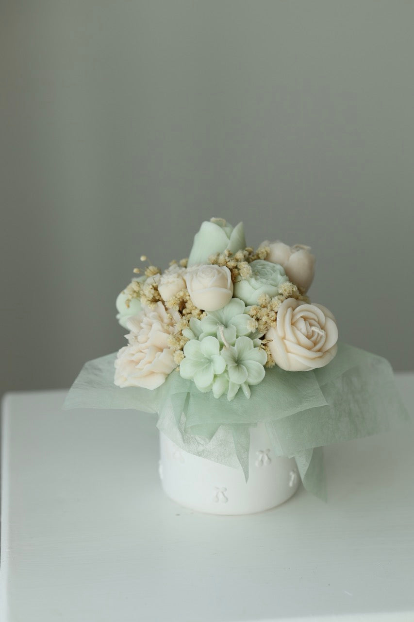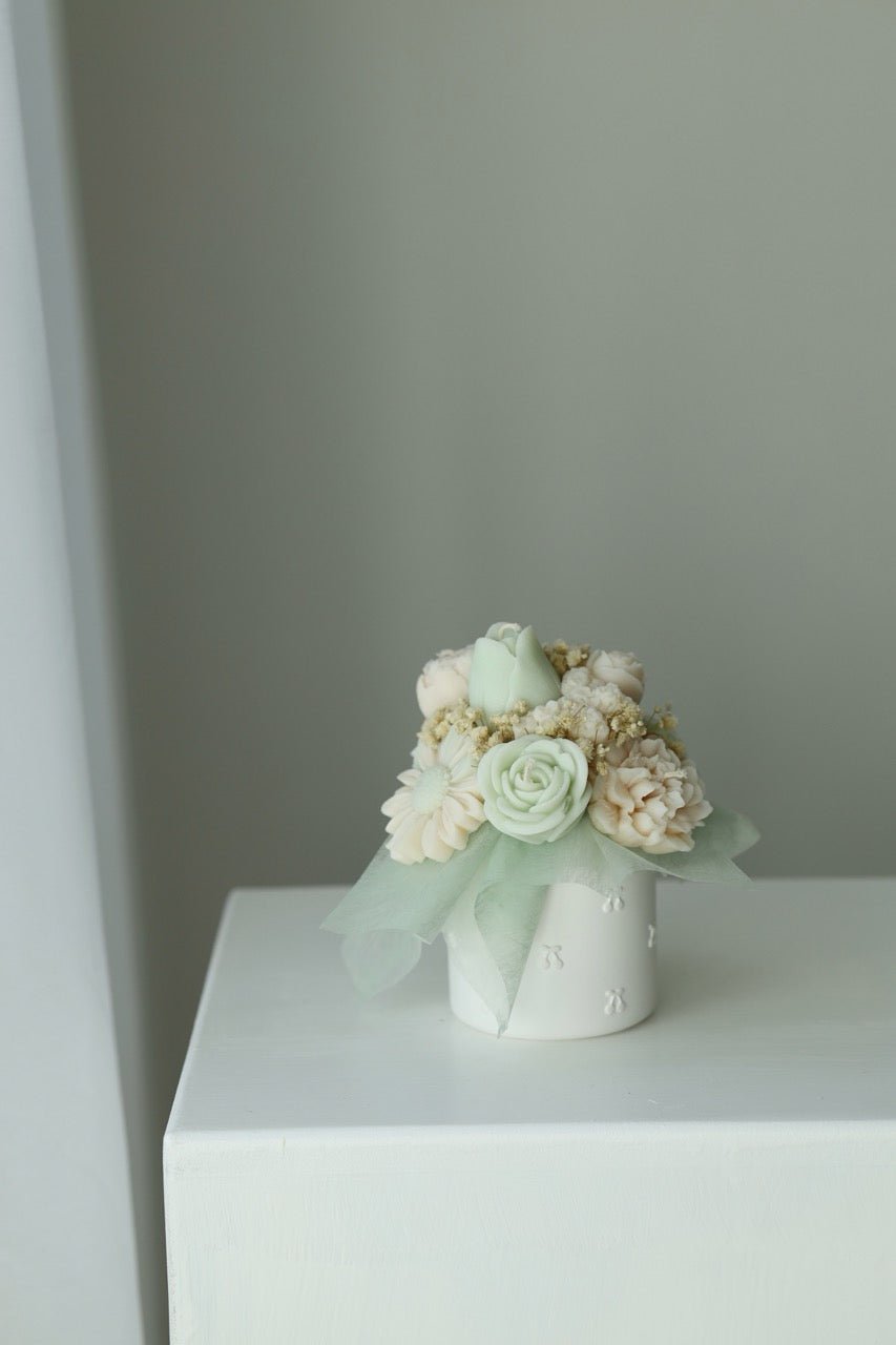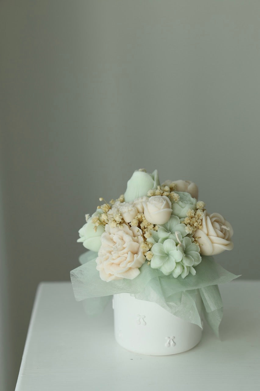 Tauche ein in die Welt von Bloom by SKARA – Raysin Edition. Jeder Strauß wird mit handgegossenen Kerzenblüten gefertigt und in einem selbst hergestellten Raysin-Topf arrangiert. So entsteht ein Arrangement, das nicht nur durch seine Blüten, sondern auch durch sein Gefäß zu einem echten Einzelstück wird. Verfeinert mit zartem Schleierkraut und abgestimmtem Seidenpapier ist dein Strauß ein besonderer Blickfang – ganz ohne zu welken.
