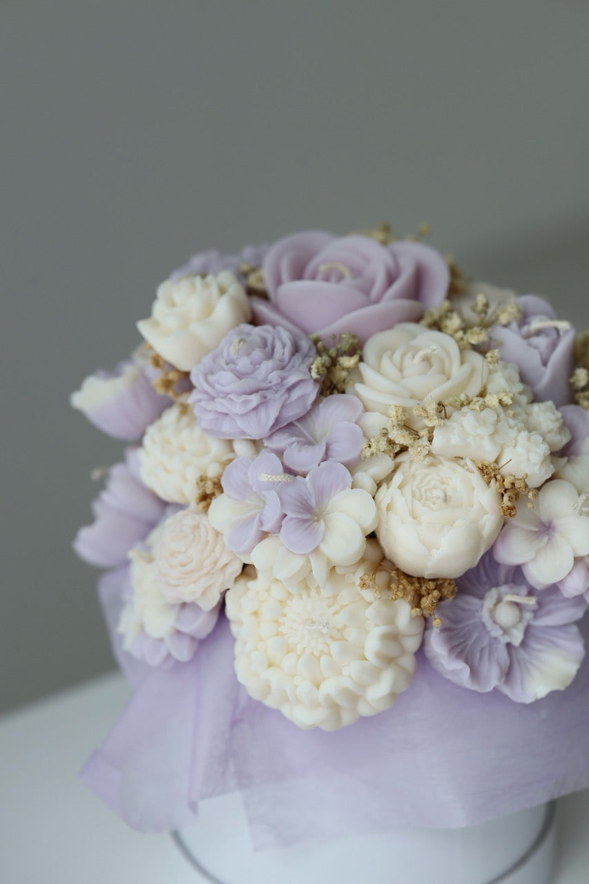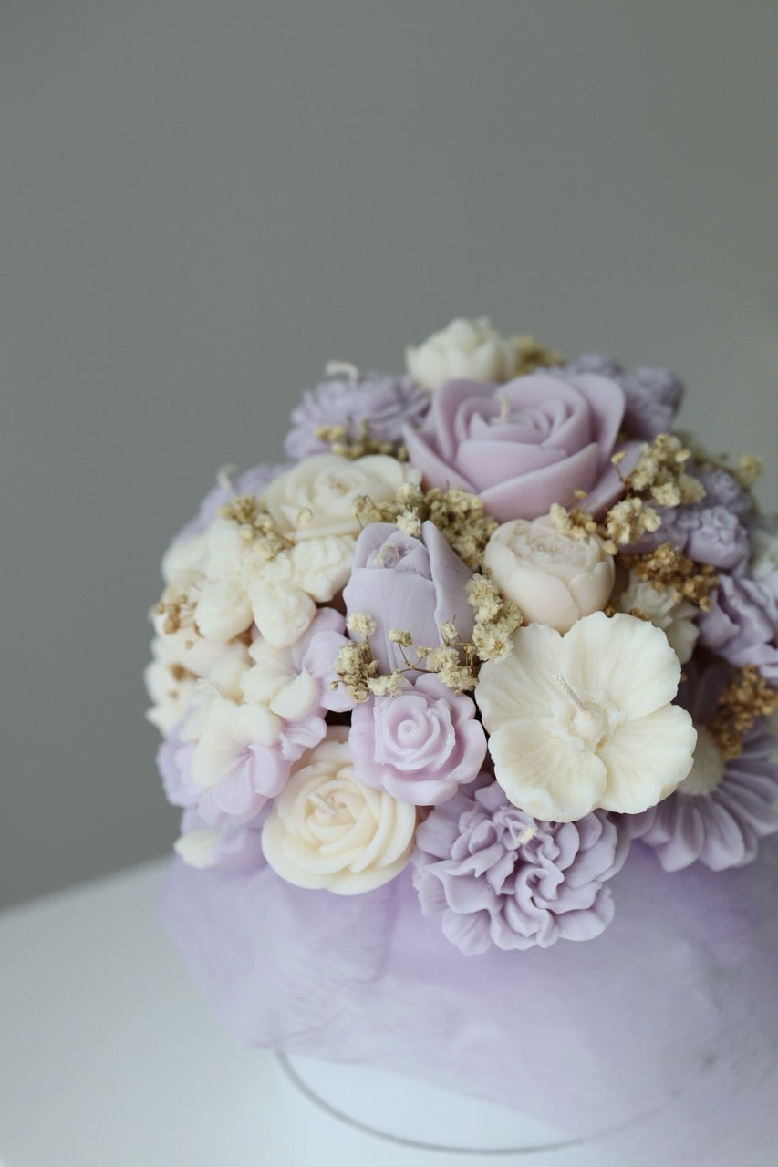 Kerzenstrauß "Lavender Haze" handgegossen aus Rapswachs