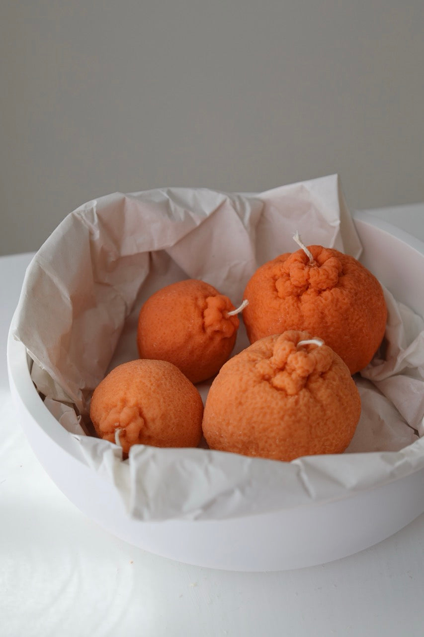 Die Mandarinenkerzen im praktischen 2er-Set bringen Farbe, Frische und einen Hauch verspielte Natürlichkeit in dein Zuhause. Durch ihre detailgetreue Oberfläche wirken sie fast wie echte Früchte – perfekt als Dekoelement oder Geschenkidee.