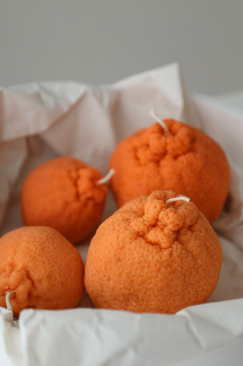 Mandarinenkerzen im 2er-Set – Handgemachte Rapswachskerzen in Fruchtform